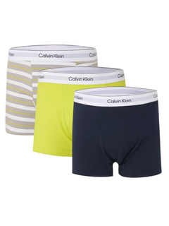 Blending everyday comfort with iconic Calvin Klein style, this 3 Pack of Cotton Stretch trunks is designed for a supportive fit and lasting softness. Made from breathable cotton with added elastane, they provide flexibility and shape retention throughout the day. Featuring a mid-rise silhouette and the signature Calvin Klein waistband, this pack includes three versatile designs: solid navy, lime, and striped.