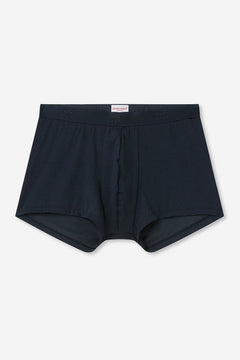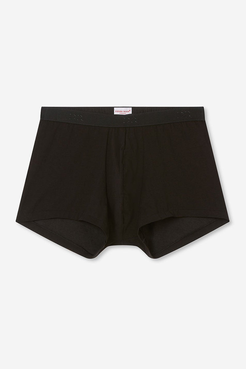 Derek Rose Jack Men's Hipster. Our Jack Black Pima Cotton Stretch Hipster is a sartorial essential that we have crafted from an incredibly soft blend of 92% Pima cotton and 8% elastane. We cut this fitted hipster for a simple, classic fit with a shorter leg and a closed front. We secured the hems by manual welting — all part of our quest for a minimalist, streamlined look and the ultimate in softness and comfort. Derek Rose is dedicated to designing comfortable, understated garments from quality fabrics and this hipster is no exception, with its fabric-covered waistband for gentle skin contact.