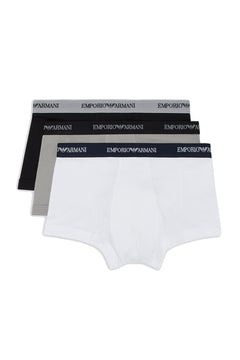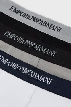 A Trio of stylish trunks by Emporio Armani. Featuring a branded waistband, regular rise fit. Crafted in stretch cotton to ensure all day comfort. Look good and feel great in these trunks.