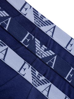 Instant wardrobe essential: the Emporio Armani Bold Monogram 3-Pack Briefs in striking blue. Cut from premium cotton-stretch jersey for breathability and a second-skin feel. The classic brief silhouette includes a contoured pouch and is elevated by an all-over monogram print with contrasting signature waistband.