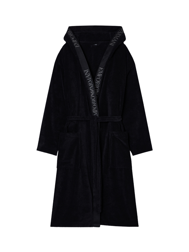 Pure indulgence after the shower. This Emporio Armani bathrobe is crafted from absorbent 100% cotton terry with a plush feel, shawl collar and tonal eagle embroidery.